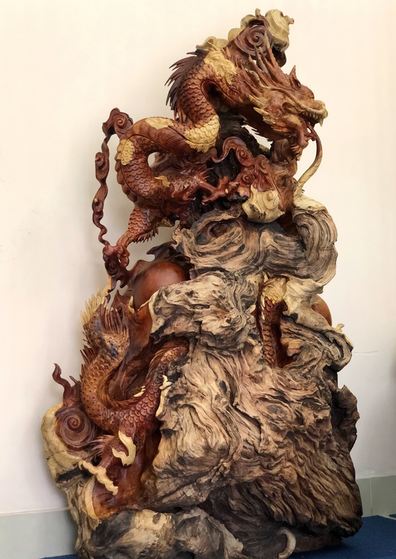 3. Tính Nghệ Thuật Cao (Sự Tinh Tế Của Nghệ Nhân) Một khối gỗ lũa dù đẹp đến đâu cũng chỉ là "nguyên liệu thô". Yếu tố quyết định để nó trở thành "tác phẩm" chính là bàn tay của nghệ nhân. Một nghệ nhân tài hoa là người biết tôn trọng tối đa hình dáng tự nhiên của khối gỗ. Họ không áp đặt ý tưởng của mình, mà chỉ can thiệp điêu khắc một cách tinh tế để "khơi gợi" và làm bật lên hình ảnh tiềm ẩn bên trong khối lũa đó. Đó có thể là các chủ đề về thiên nhiên, truyền thuyết, tượng Phật, hoặc các linh vật.